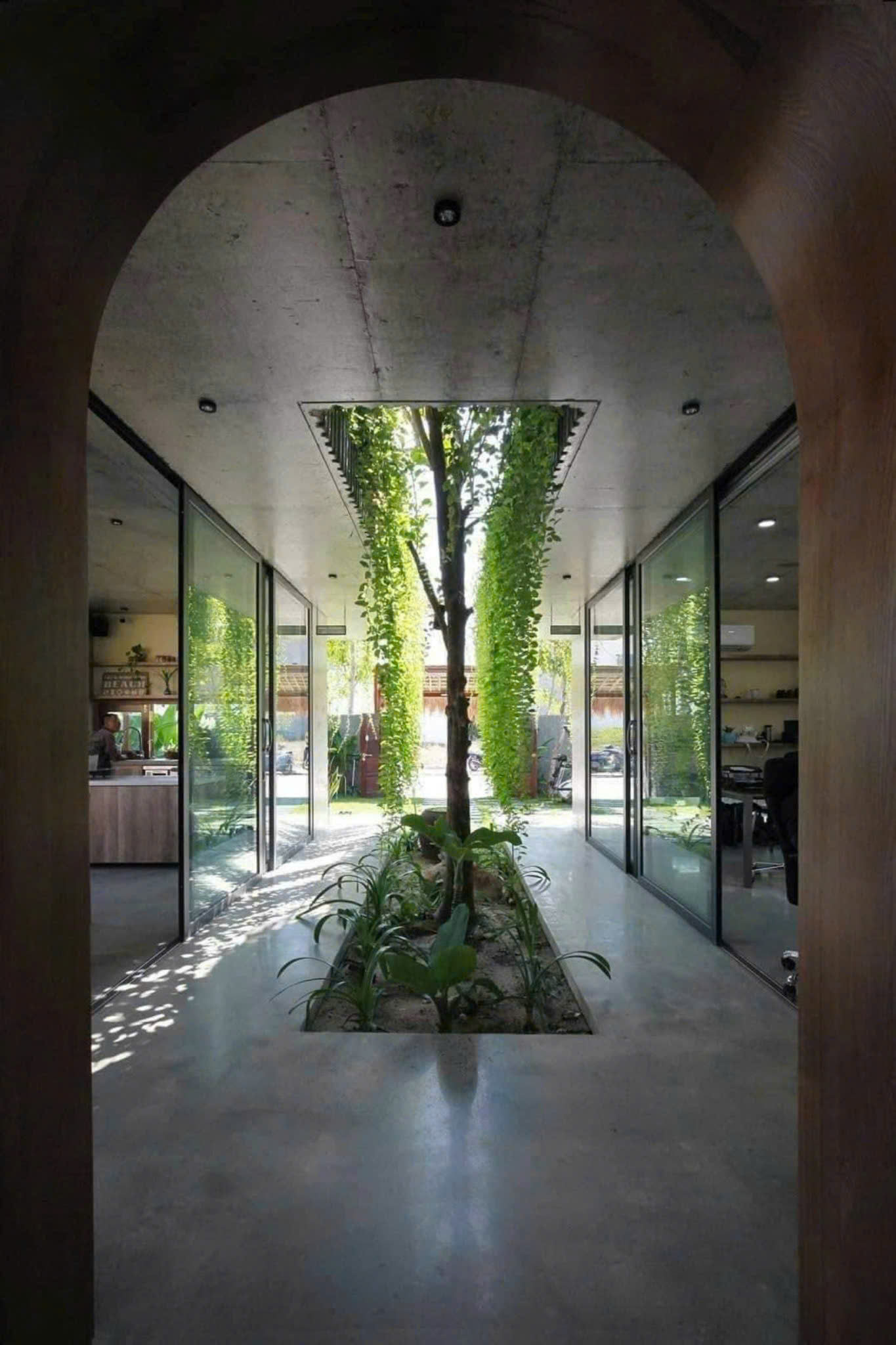 Tiện ích bao gồm: Sân trước, phòng khách, Phòng ăn & Bếp chính với không gian mở, 2 phòng ngủ, 2 WC, không gian vườn trên lầu 2 với hệ thống tưới tiêu tự động. Bếp phụ & Sạp gỗ tại sân vườn, nhà có mái lá nhẹ nhàng mát mẻ, tường ốp đá tự nhiên, thân thiện với môi trường.
