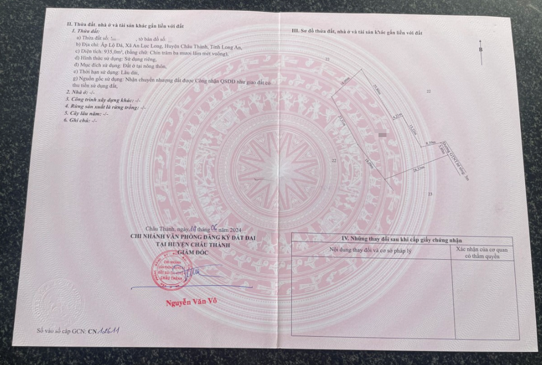 Long An , Châu Thành 935m2 thổ cư giá 950tr . Đường xe hơi , ô tô .