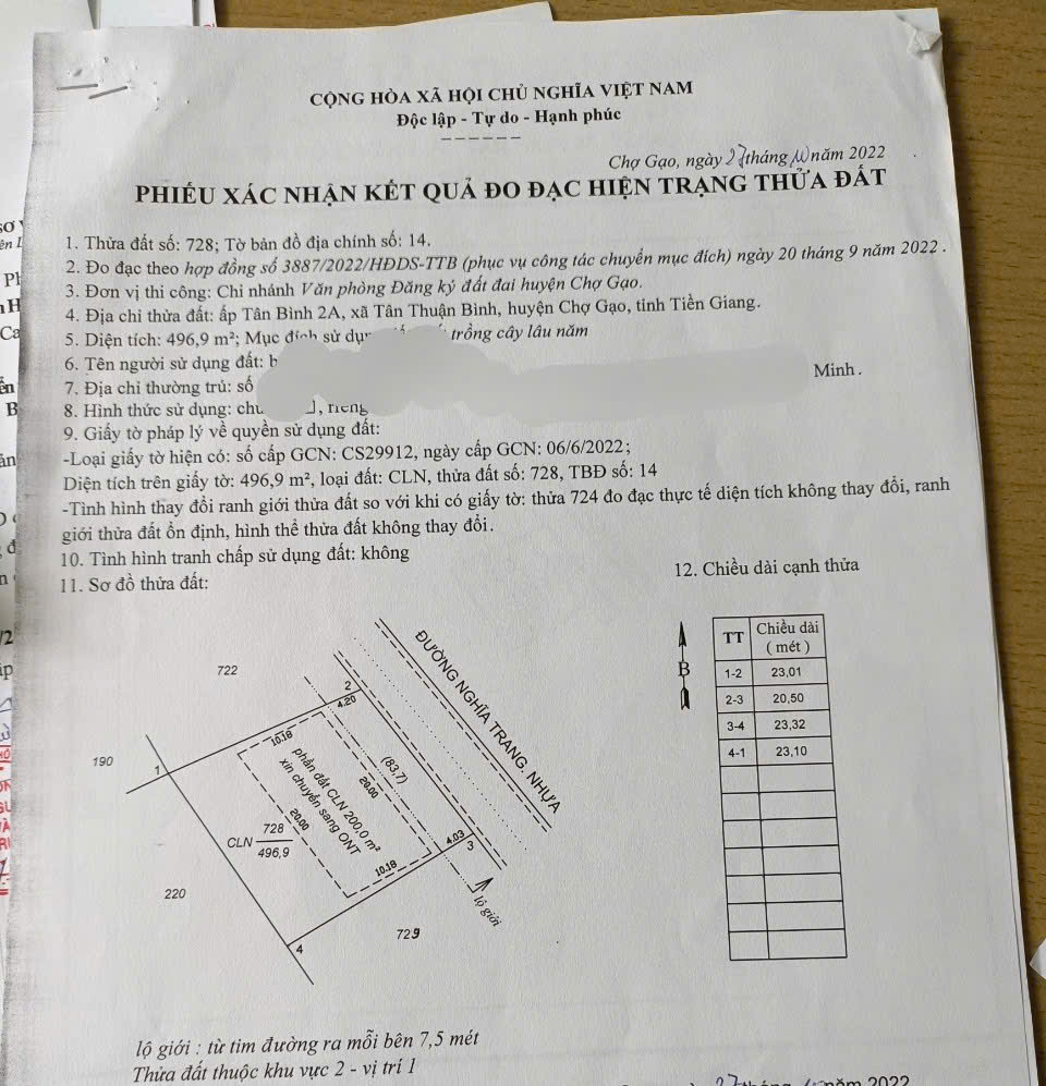 - Diện tích: 497 m2. Có 200 thổ cư.