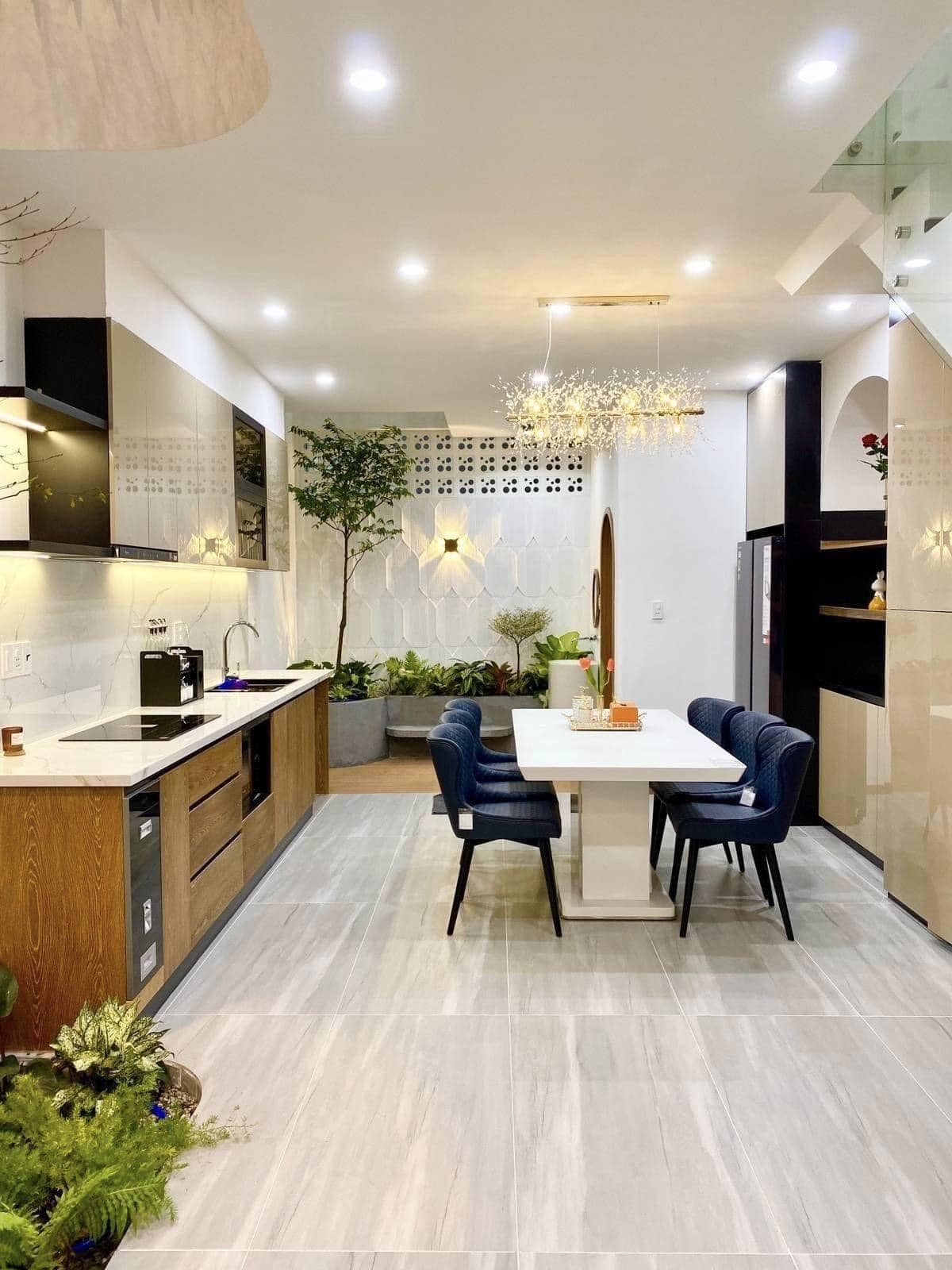 Phòng khách hiện đại, bếp rộng rãi