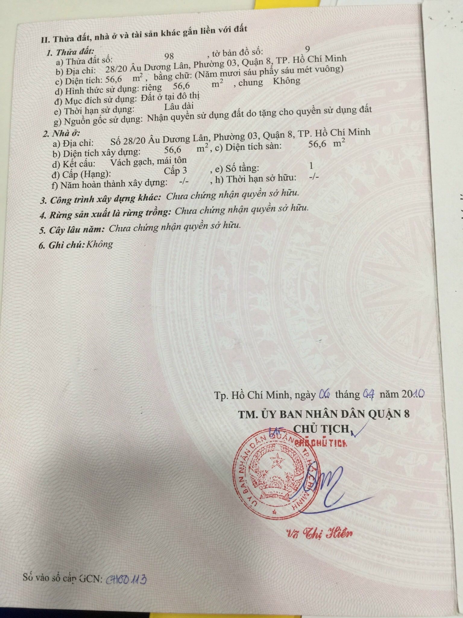 - Hẻm 1 / đường Âu Dương Lân, phường 3, Quận 8