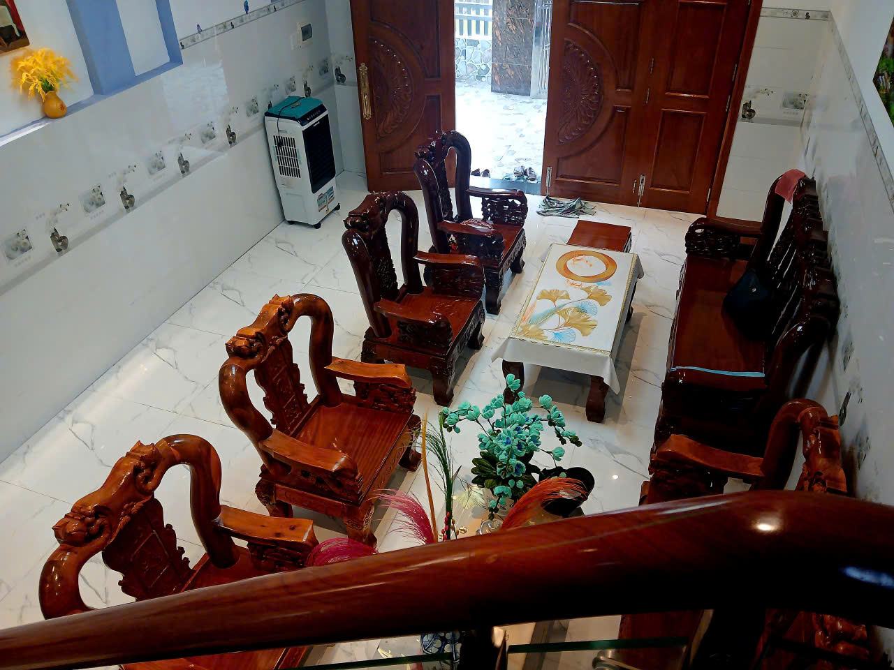 = Toàn bộ nội thất và hệ thống cửa làm bằng Gõ Đỏ.
