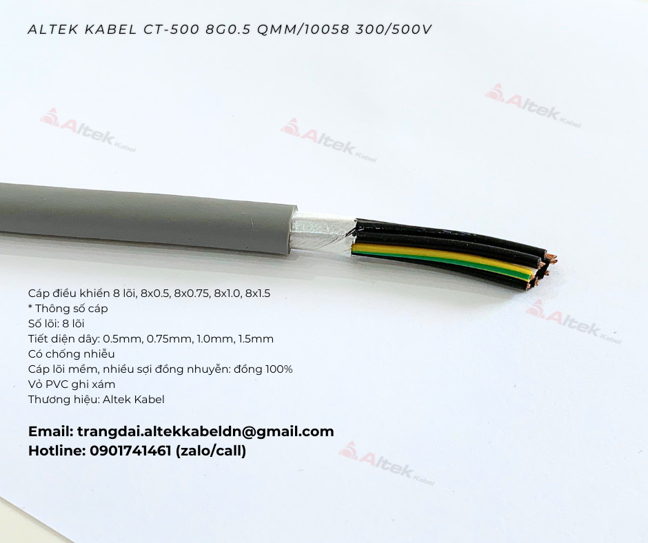 cáp điều khiển 8 lõi, cáp chống nhiễu 8 lõi, cáp chống nhiễu 8x0.5, cáp chống nhiễu 8x0.75, cáp chống nhiễu 8x1.0, cáp chống nhiễu 8x1.5, cáp điều khiển altek kabel, giá cáp 8 lõi,