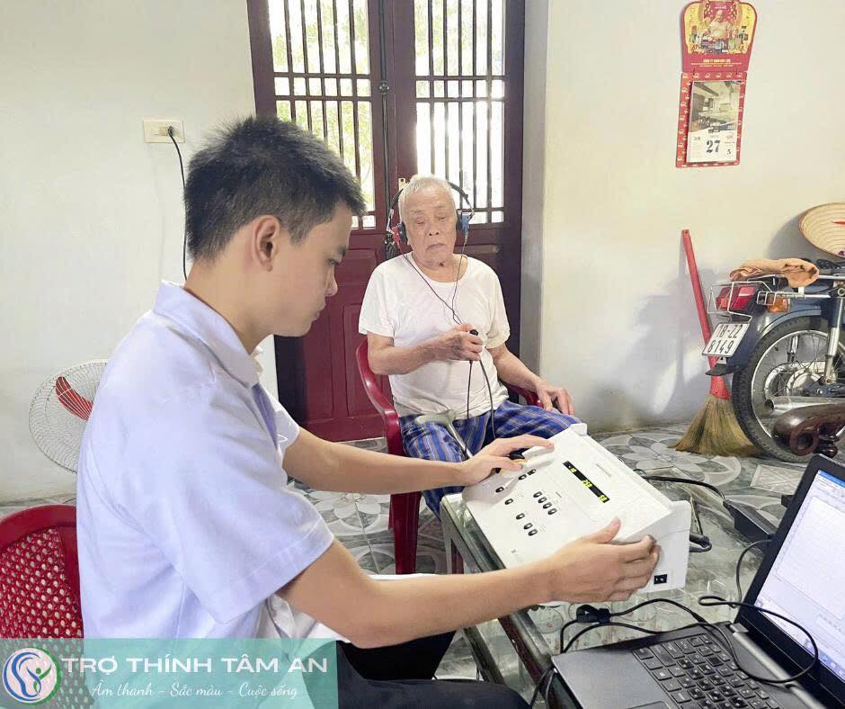 Theo nguyện vọng của các con, đội ngũ Trợ Thính Tâm An Nam Định đã đến tận nhà để lắp máy trợ thính cho ông.