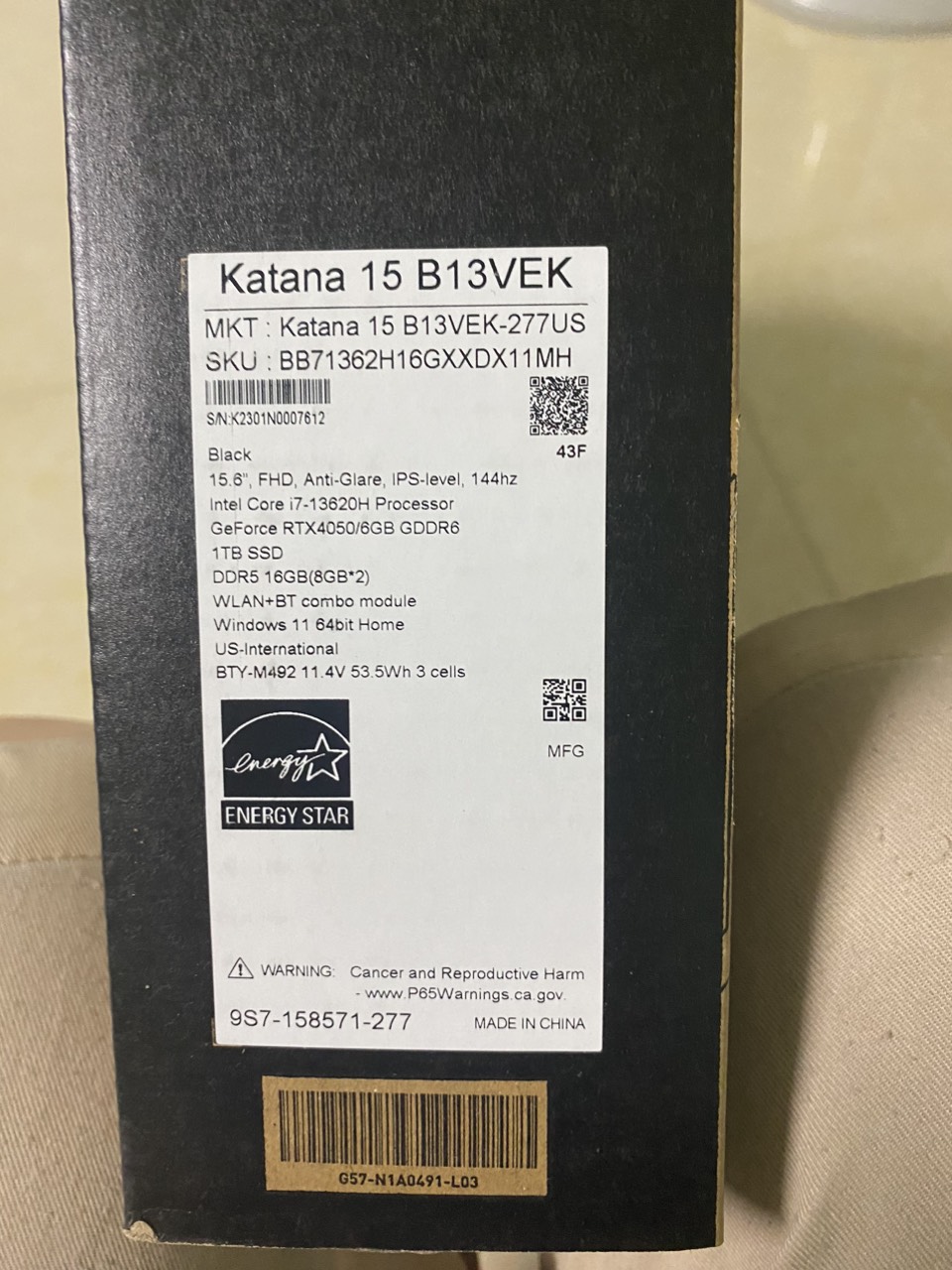 Tham khảo chi tiết tại: https://www.amazon.com/MSI-Katana-B13VEK-277US-Gaming-GeForce/dp/B0BZBN3857?th=1