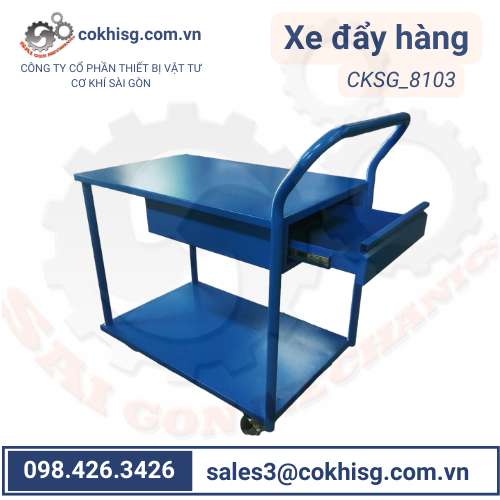 - Xe đẩy có 02 tầng và 01 ngăn kéo nhỏ