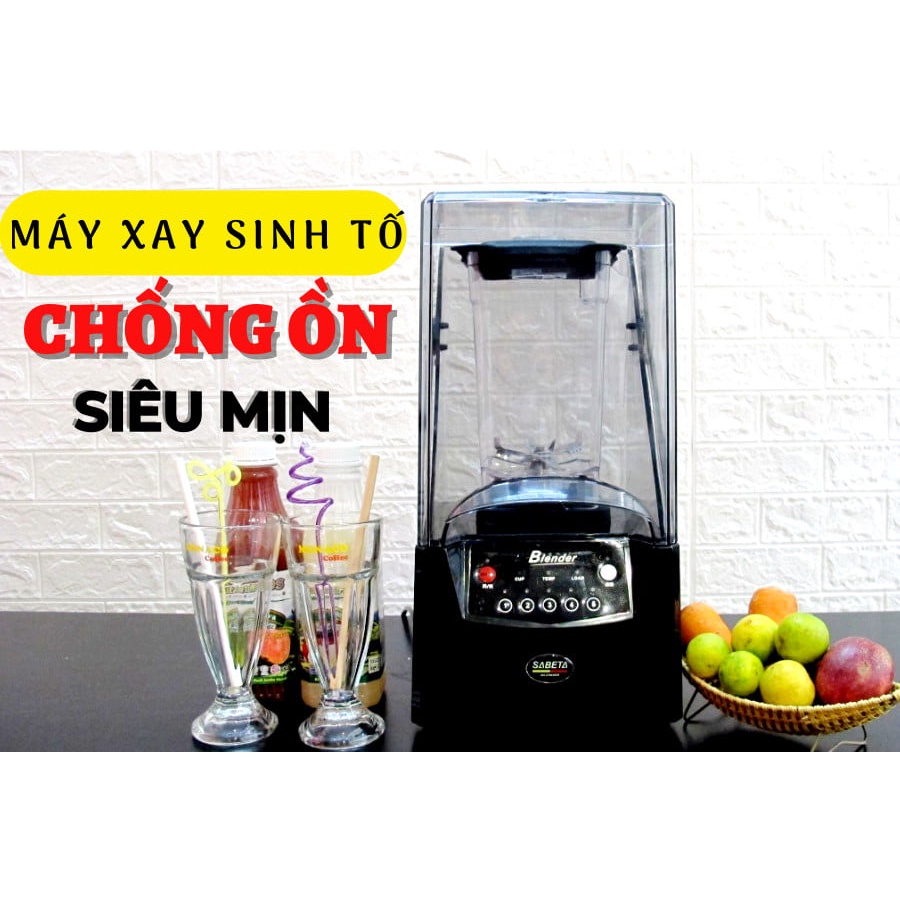 - Máy xay sinh tố công nghiệp blender được trang bị bộ động cơ mạnh mẽ 2200W, kết hợp với bộ chống ồn độc quyền với lồng nhựa trong siêu đẹp giúp tiếng ồn giảm đi một nửa so với máy xay thông thường. Sản phẩm là một sự lựa chọn sáng suốt cho những quán cà phê, trà sữa hay những quán bar sang trọng. Sản phẩm đáp ứng được nhu cầu sử dụng với tần suất lớn. - Chất liệu cối xay cao cấp an toàn cho người sử dụng, chất liệu Polycarbonate chịu lực lớn. Lưỡi dao làm bằng chất liệu Titanium siêu cứng cho phép máy xay làm được những công việc ""nặng nhọc"" hơn những chiếc máy xay bình thường giúp bạn dễ dàng xử lý những nguyên liệu cứng đầu nhất. Hơn thế nữa lưỡi dao 4 cánh thiết kế kép giúp đảo trộn cực kì dễ dàng kể cả say 1 cốc sinh tố không lo dính đáy cối. - 5 chế độ đảo trộn: 40s, 48s, 55s, 70s, 90s. Chế độ quay rồi nhả giúp khuấy đều nguyên liệu trong cối mà không cần que khuấy