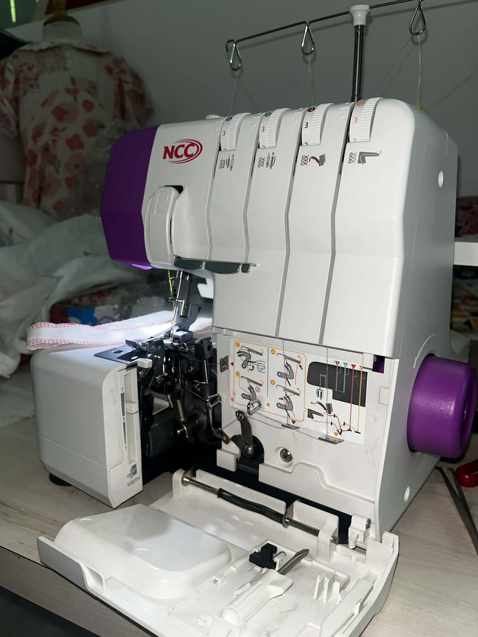 Đặc điểm nổi bật: Dễ xỏ chỉ, vắt sổ 3 chỉ hoặc 4 chỉ linh hoạt, cuốn biên, nhún bèo tay áo, phù hợp cho gia đình hoặc tiệm may nhỏ.