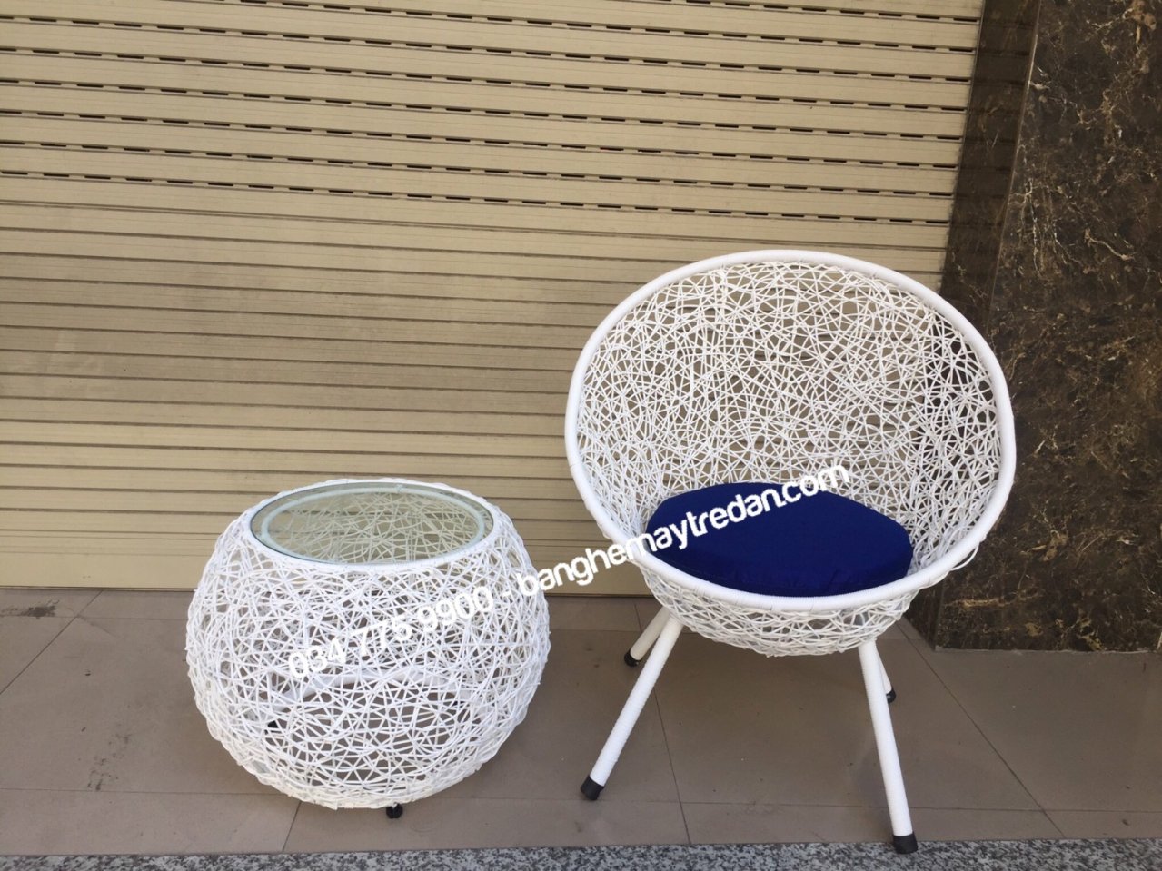Bàn ghế nhựa giả mây đan rối