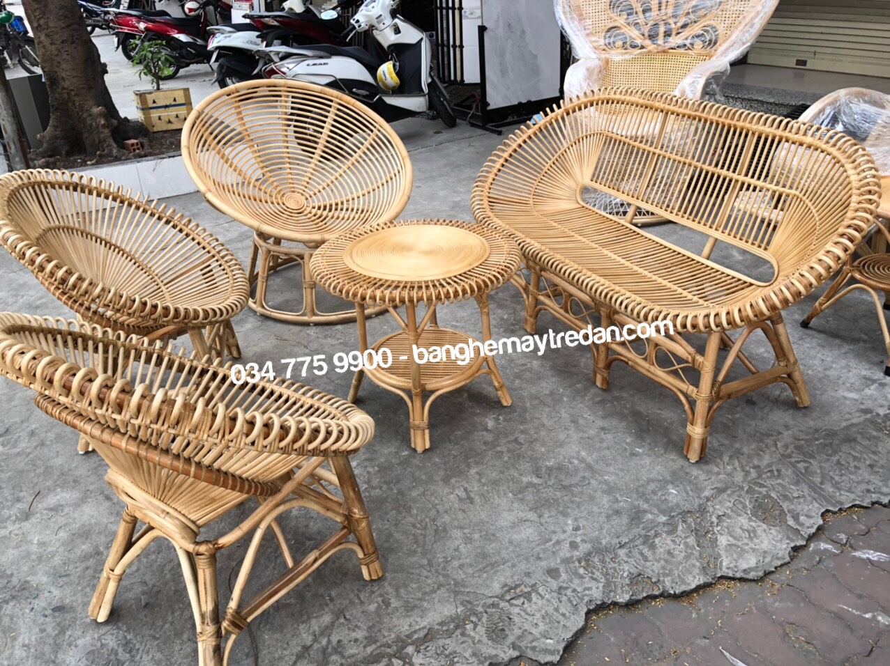 Bàn ghế sen tròn - Bàn ghế mây tre cho phòng khách