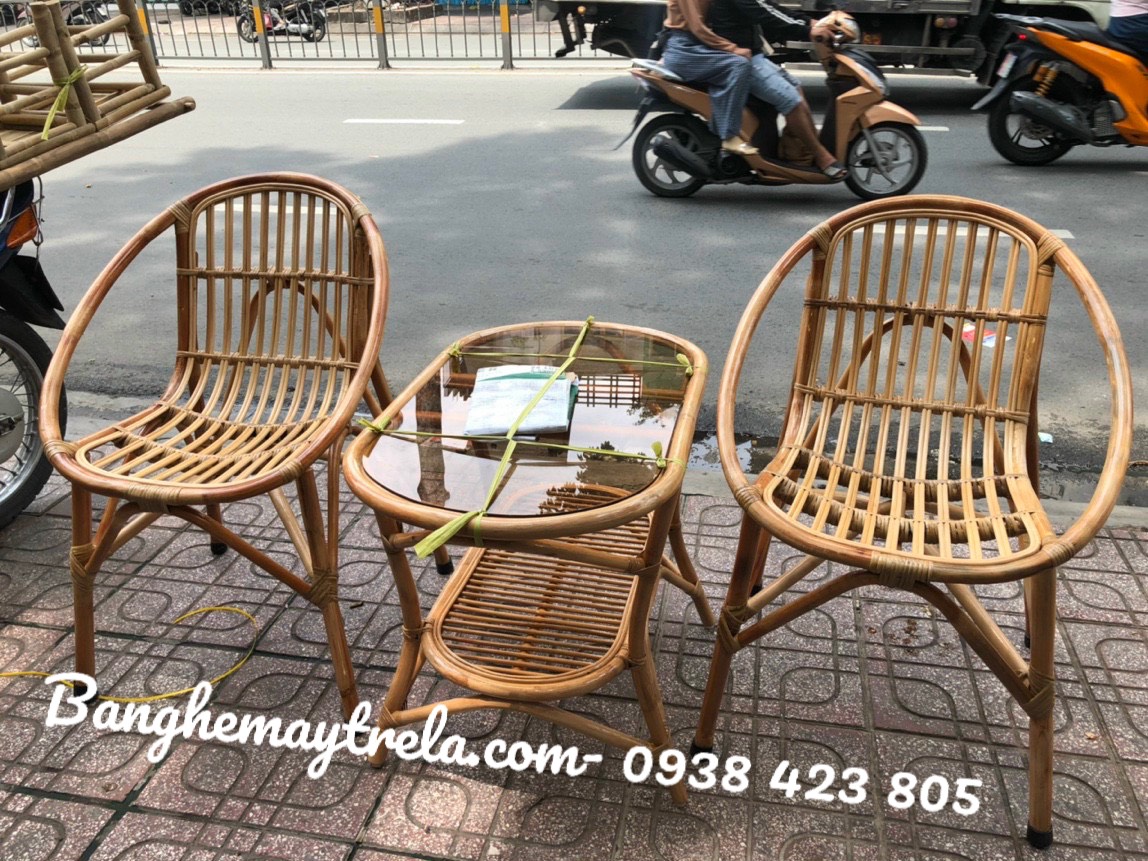 Đi kèm có các loại bàn như sau: bàn mây tròn đan kín, bàn tròn có kính, bàn vuông có kính, bàn chữ nhật có kính hay bàn đôn nhỏ gọn đều đẹp.
