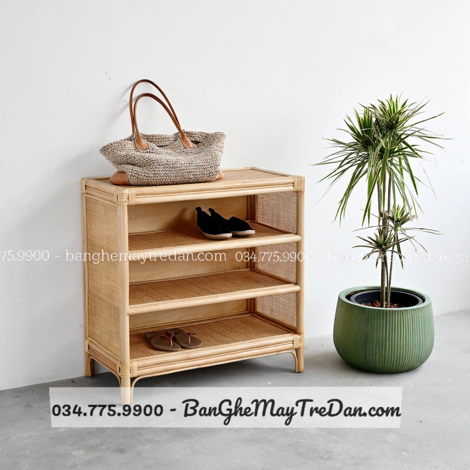 Sử dụng chất liệu mây tự nhiên, Kệ Giày 4 Tầng thân thiện với môi trường, dễ dàng sắp xếp và lưu trữ giày dép một cách ngăn nắp, giúp không gian sống luôn gọn gàng và tiện lợi.