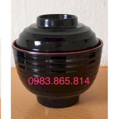 Bát soup miso, bát soup có nắp, bát soup nhựa đỏ đen, bát soup nhật, bát soup nhà hàng,