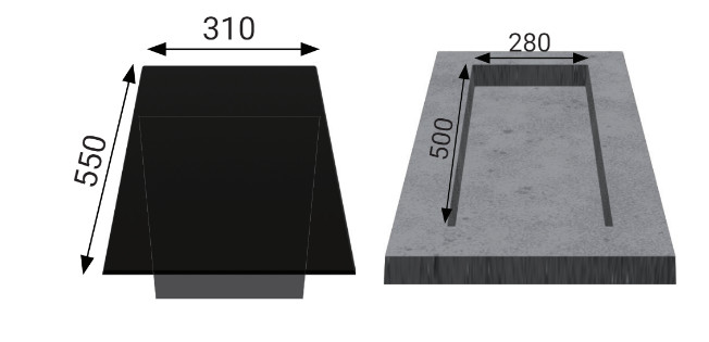 • Kích thước khoét đá: 280 x 500 mm
