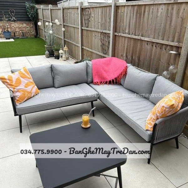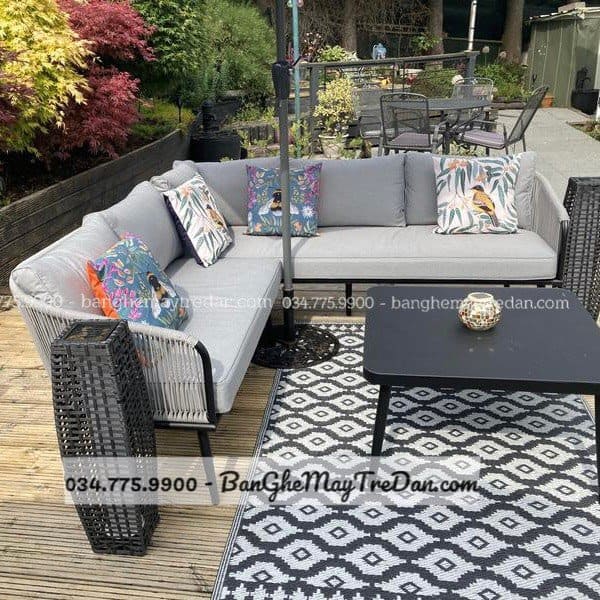 Sở hữu thiết kế vững chãi với tone màu ghi dịu mắt, bộ sofa góc dây dù đang được rất nhiều khách hàng tại Mây Tre Lục Bình lựa chọn cho không gian sống nhà mình. Thiết kế Sofa góc chữ L siêu tiết kiệm diện tích, gia chủ hoàn toàn dễ dàng di chuyển và bài trí theo sở thích.