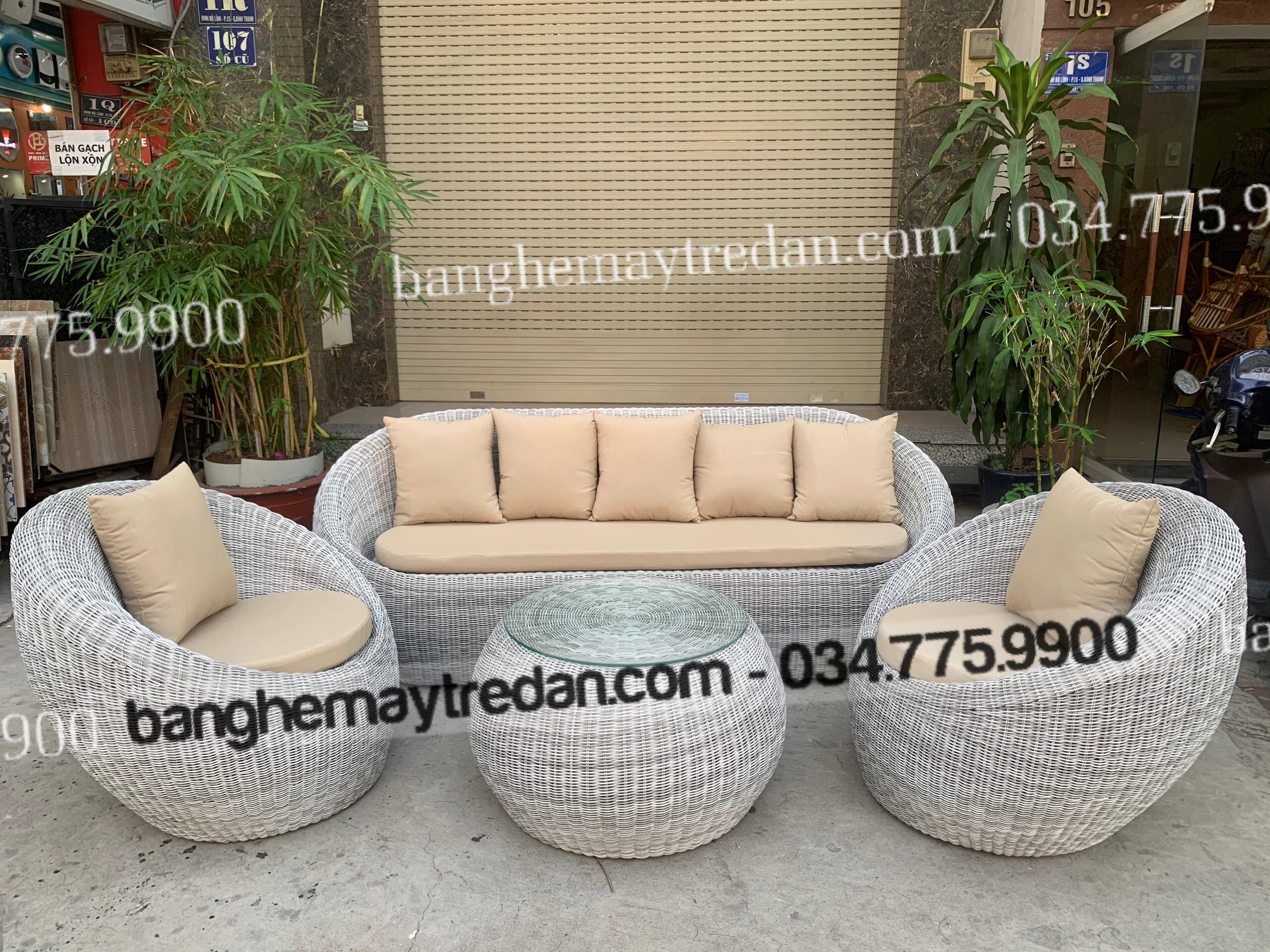 Bàn ghế sofa độc đáo hình trứng, bàn ghế sofa nhựa giả mây đan mang đến một cái nhìn mới mẻ và đầy phá cách cho không gian ngoài trời