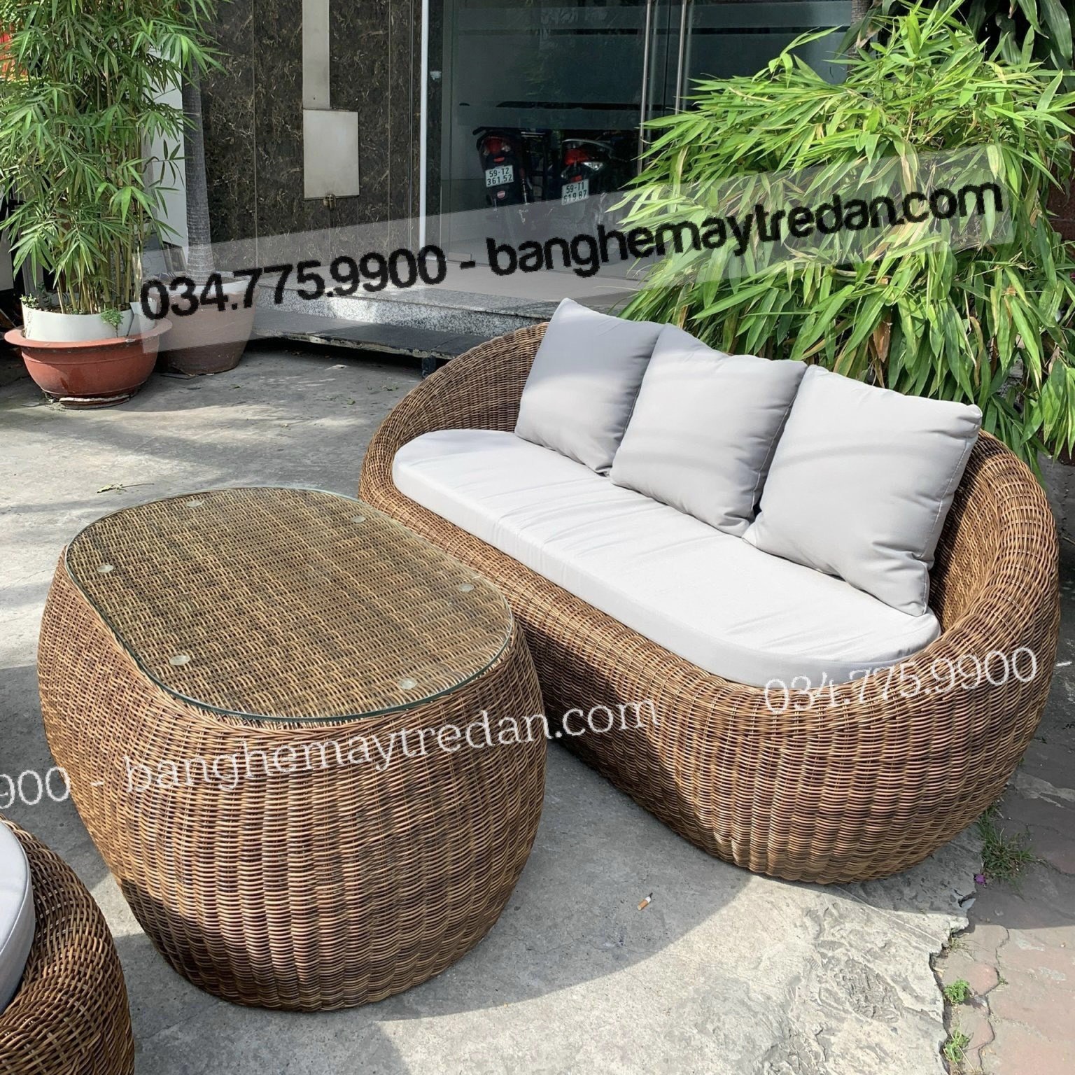 Chất liệu nhựa giả mây không chỉ đảm bảo tính bền bỉ và khả năng chịu thời tiết xuất sắc, mà còn mang đến sự thoải mái và dễ dàng trong việc bảo quản.