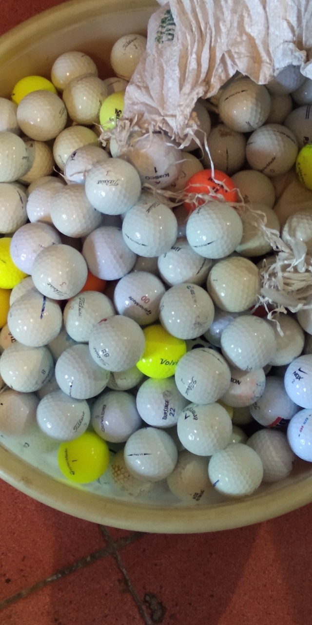 Bóng golf cũ đã qua sử dụng nhưng chất lượng còn tốt có thể dùng để tập golf tại nhà hoặc tại các sân tập golf.