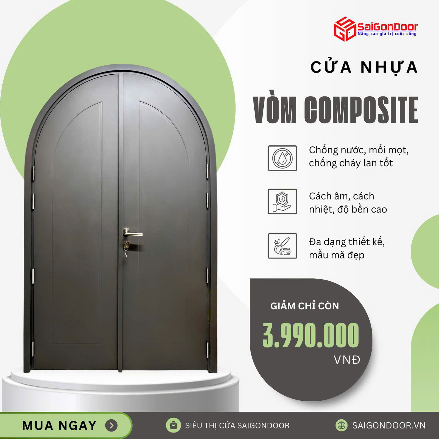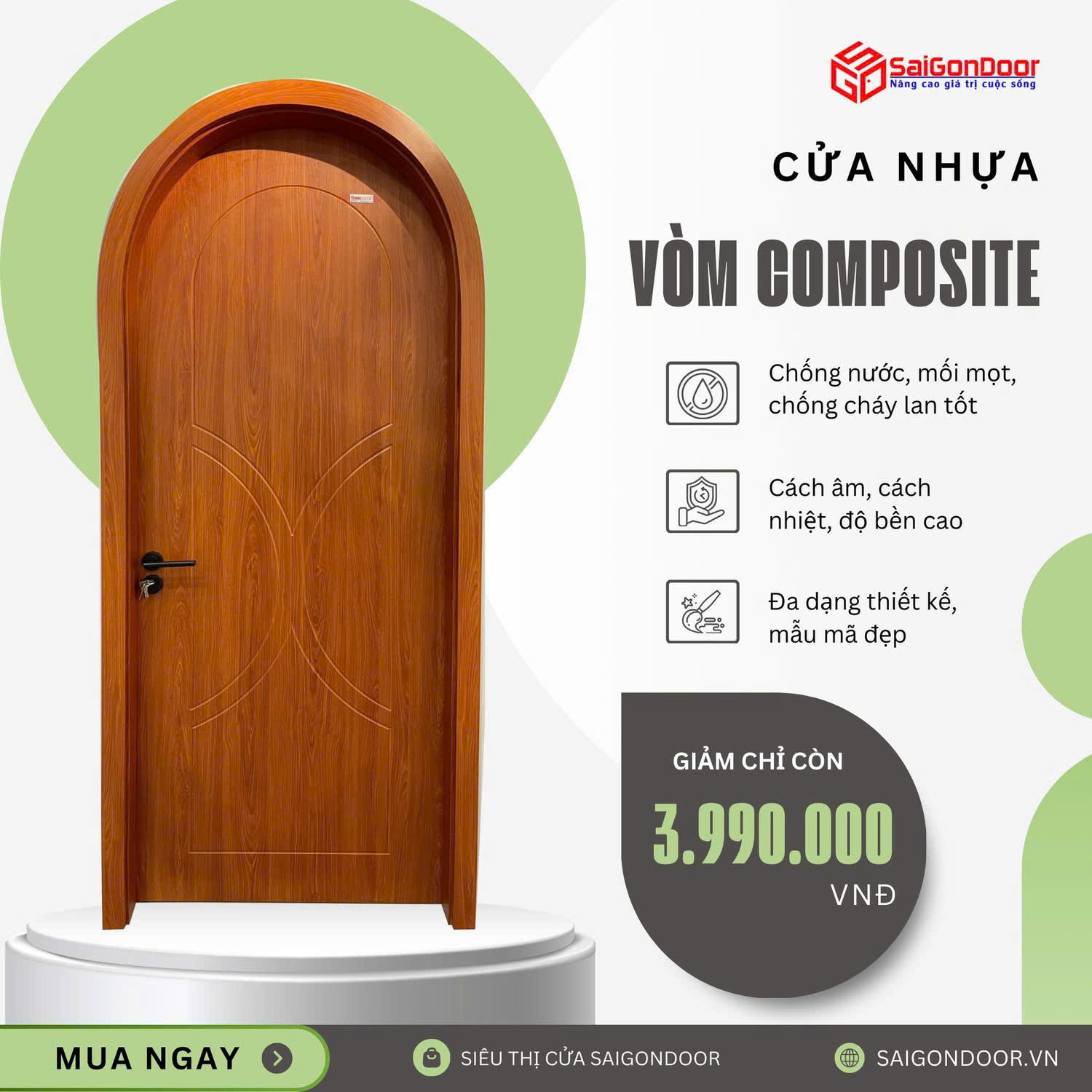 Không phải ngẫu nhiên mà dòng cửa này lại nhận được sự quan tâm đặc biệt từ các kiến trúc sư và chủ đầu tư. Dưới đây là những ưu điểm cửa vòm composite vượt trội khiến nó trở thành giải pháp thay thế hoàn hảo cho cửa gỗ truyền thống.