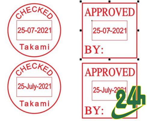 Kích thước dấu : 30*30mm, có 2 mẫu : mẫu tròn R30 dater và mẫu vuông Q30 dater