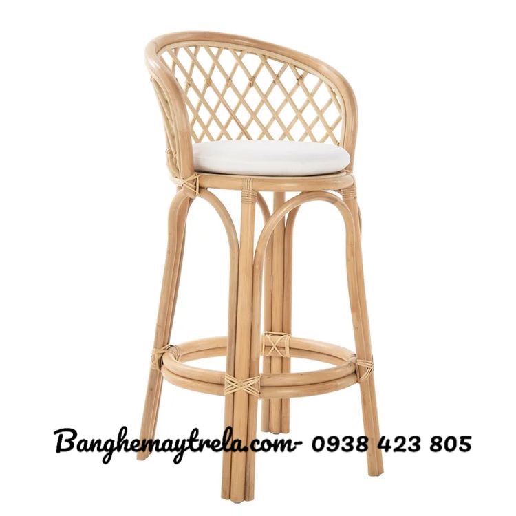 Ghế quầy bar được làm từ mây tự nhiên toàn bộ, phủ màu theo yêu cầu.
