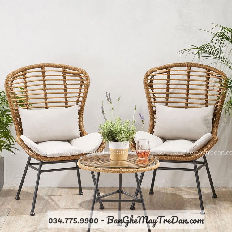 Bộ 2 ghế và 1 bàn này không chỉ phù hợp cho không gian ngoại trời, mà còn cho phòng khách, phòng chờ hoặc bất kỳ không gian nào.