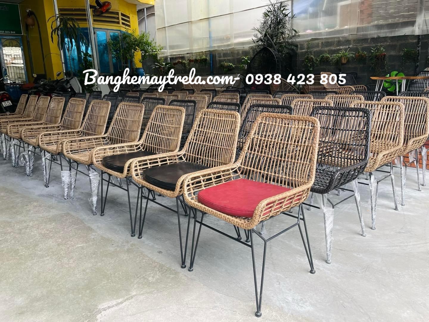 Ghế Cafe Khung Sắt Đan Dây Nhựa Giả Mây – Bền Bỉ & Thanh Thoát
