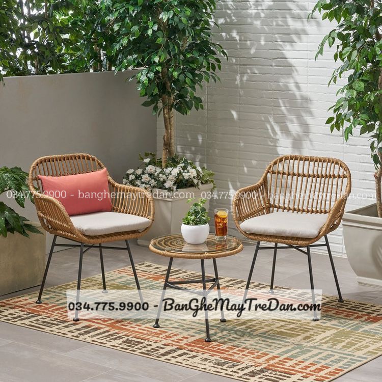 Ghế nhựa giả mây nhỏ gọn cho ban công