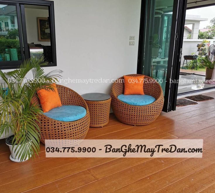 Kết hợp ghế mây nhựa với các phụ kiện và trang trí khác để tạo ra không gian ban công đẹp mắt và ấm cúng.