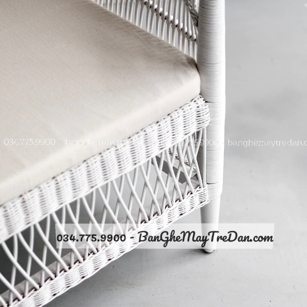 Ghế sofa mây tự nhiên màu trắng mang lại sự tinh tế và thanh lịch, tạo cảm giác sang trọng và sáng sủa cho không gian phòng khách.