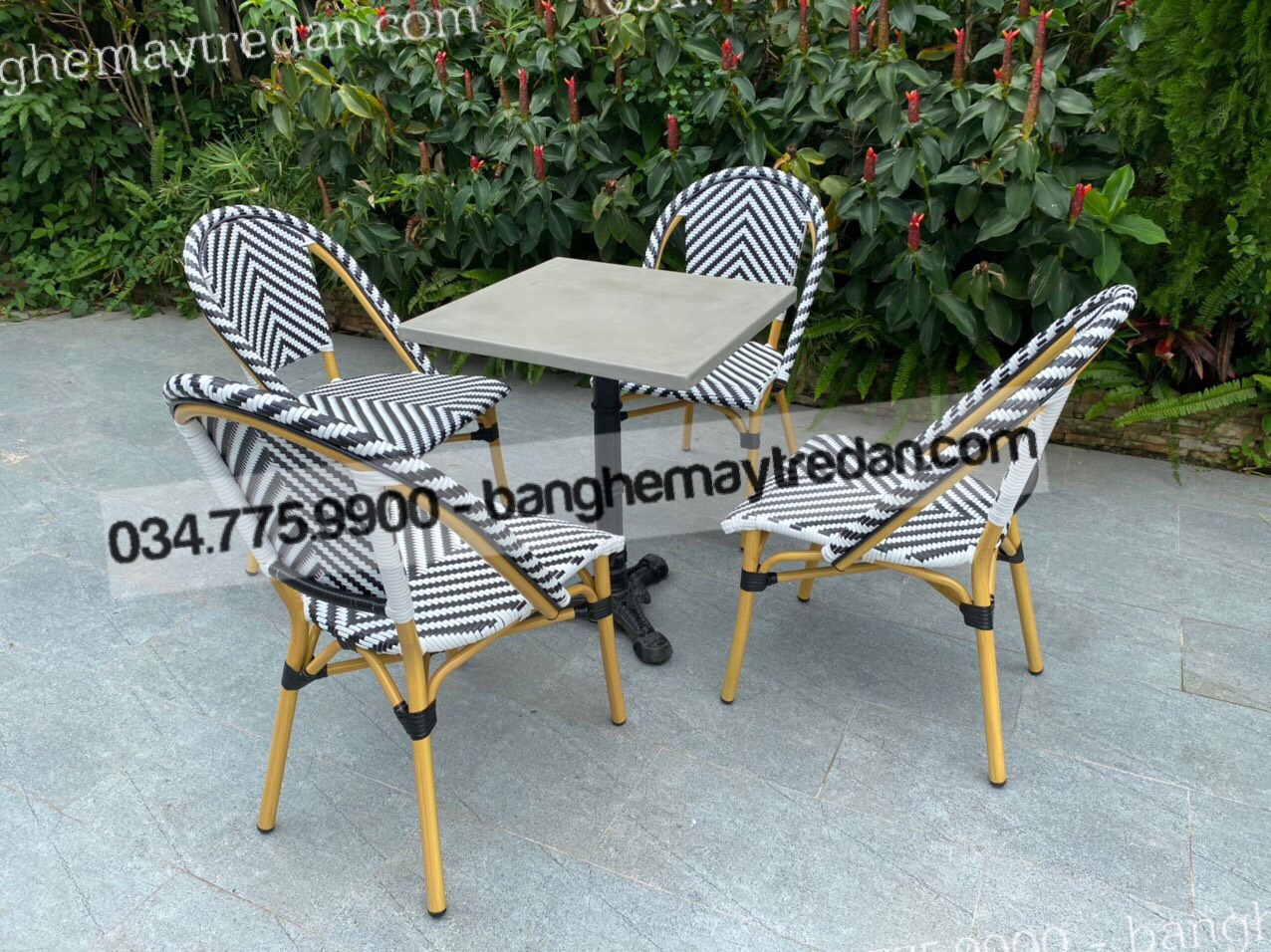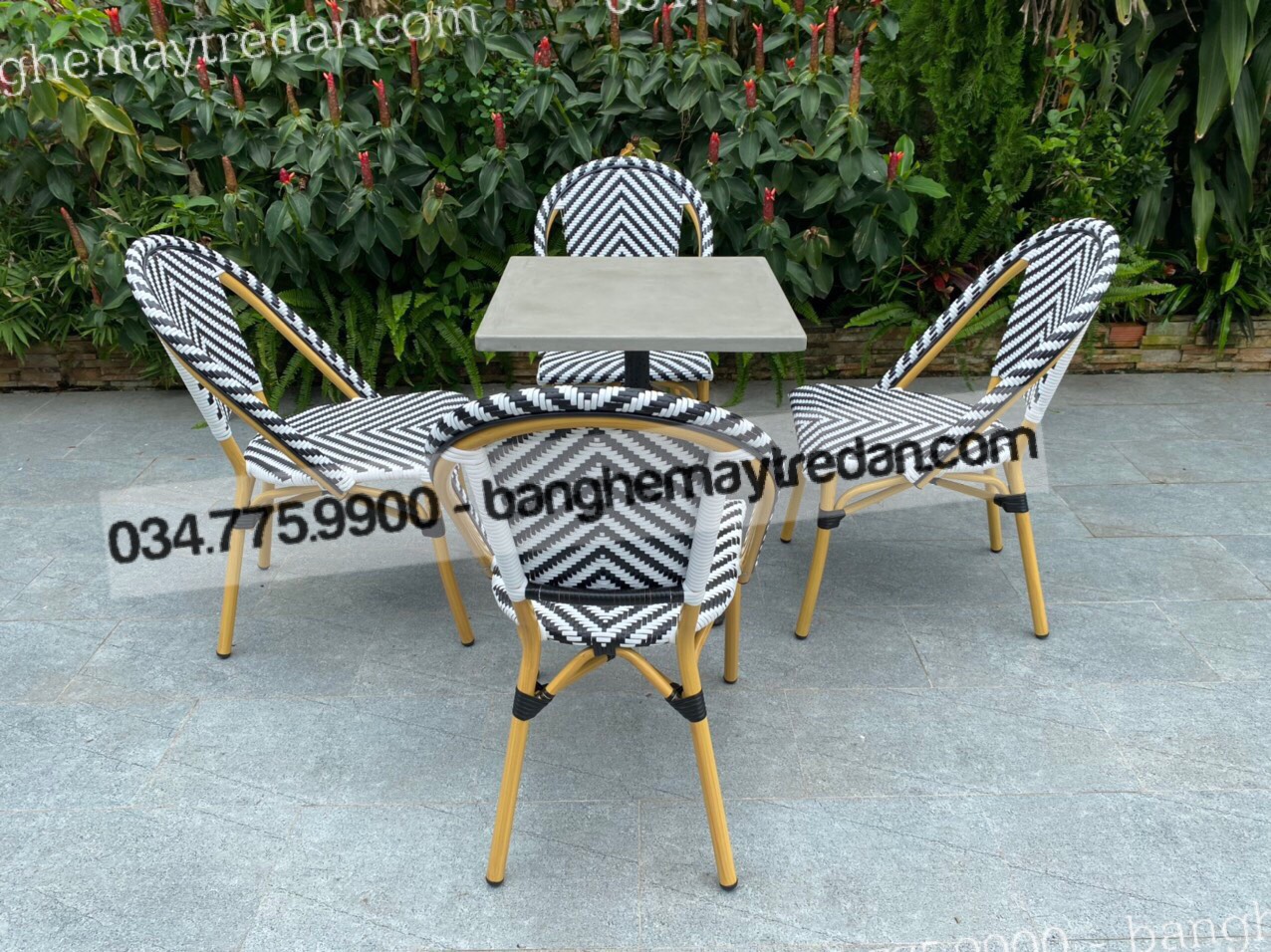 Dây nhựa giả mây trắng - đen xen kẽ tạo nên sự độc đáo và nổi bật cho ghế. Đan tinh tế và tỉ mỉ, đem lại không gian tươi mới và phong cách đương đại. Không chỉ đẹp mắt, những sợi dây nhựa giả mây còn chống nắng, chống mưa và dễ dàng vệ sinh, giúp ghế luôn giữ được vẻ mới mẻ suốt thời gian dài.