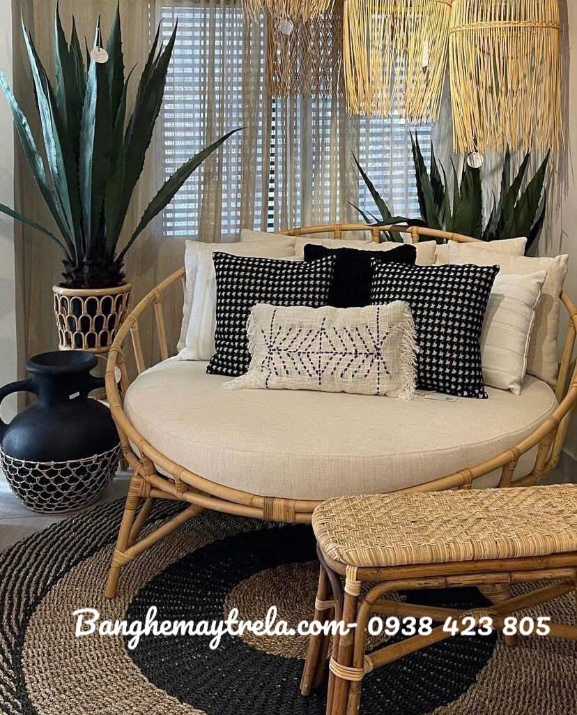 Ghế tròn mây tự nhiên – Giường mây tròn lựa chọn hoàn hảo để decor không gian thêm tinh tế và gần gũi với thiên nhiên. Thiết kế bo tròn mềm mại, chất liệu mây đan thủ công mang đến cảm giác ấm cúng, phù hợp cho phòng khách, phòng ngủ hay ban công phong cách vintage. Bền đẹp, nhẹ nhàng và dễ di chuyển – điểm nhấn lý tưởng cho mọi không gian sống.