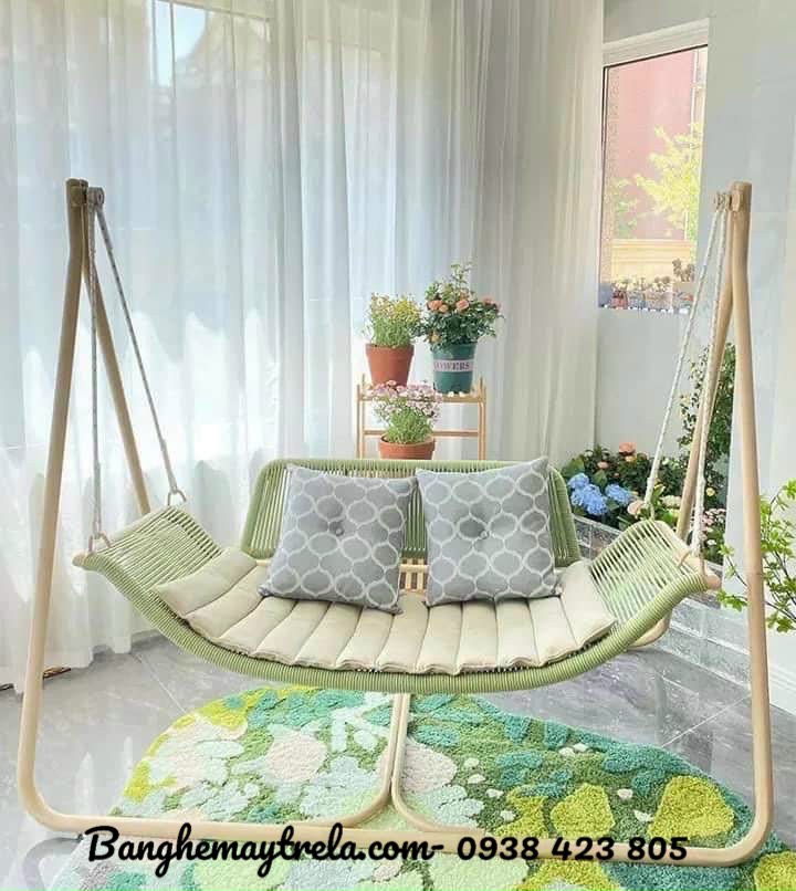Không cần nói quá nhiều, chỉ cần một chiếc xích đu nhựa giả mây – đan tay mộc mạc, dáng cong tinh tế – là đủ để kể một câu chuyện.