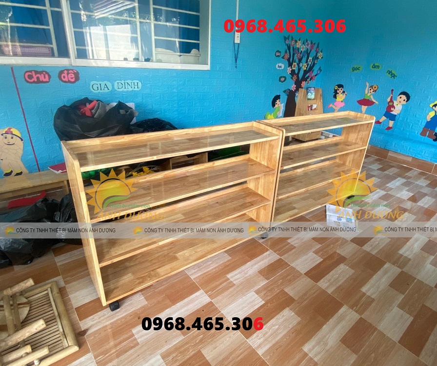 Sản phẩm kệ để đồ bằng gỗ cho bé 3 tầng sử dụng phù hợp cho trường mầm non công lập, tư thục, khu vui chơi…
