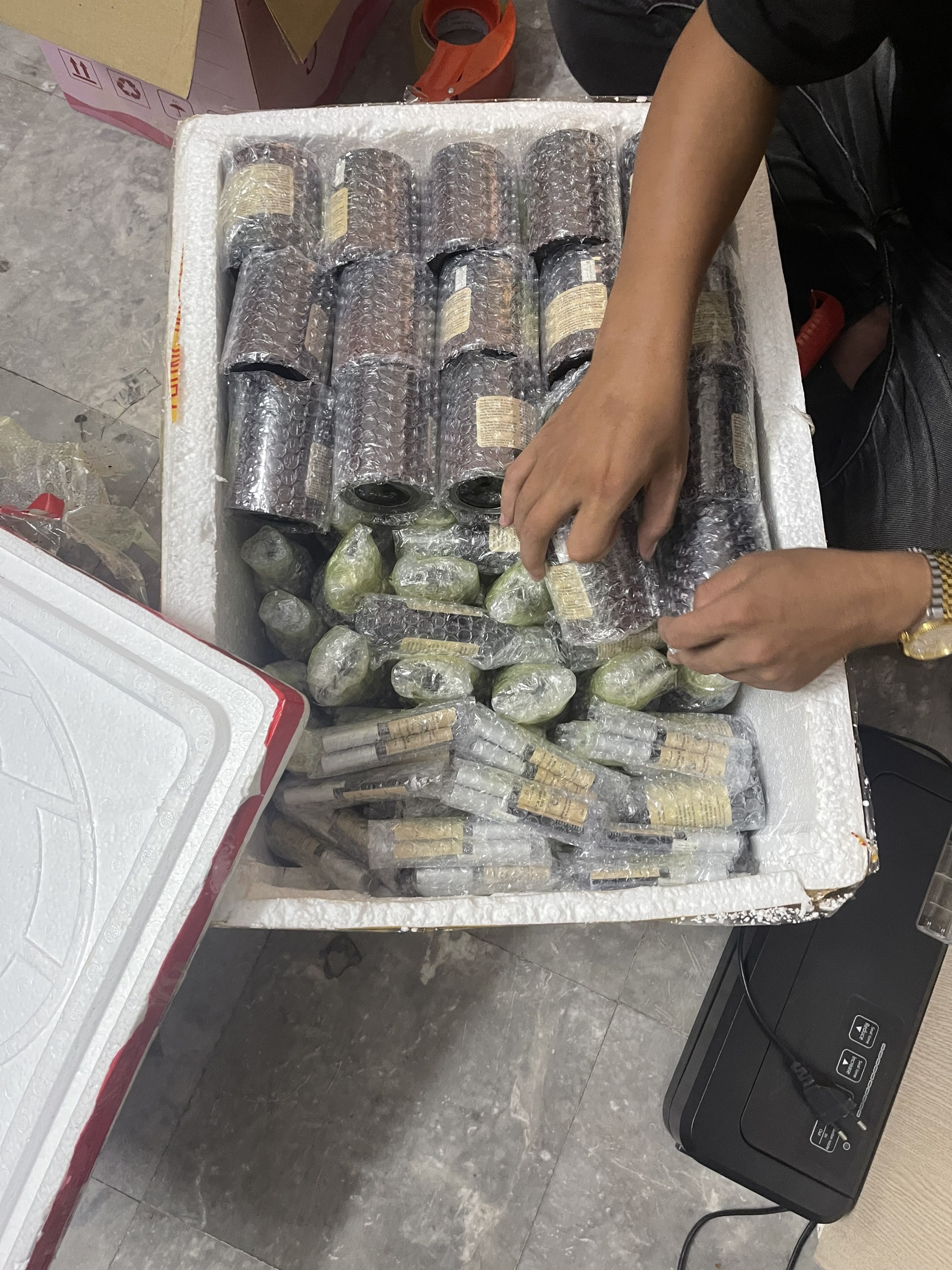 Xử lí hàng hóa, đóng gói, tem nhãn, hút chân không,..