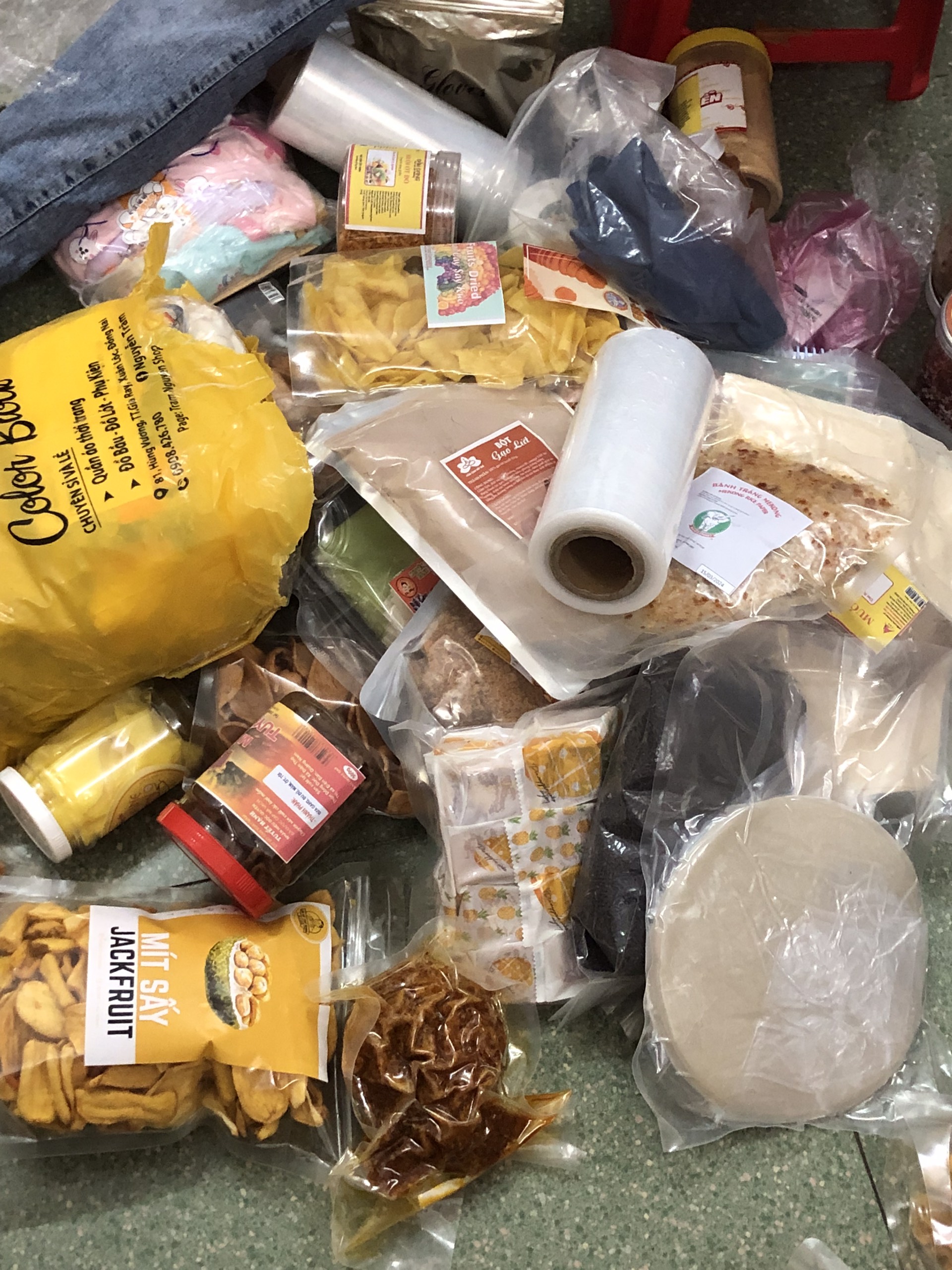 + Hàng thực phẩm khô: khô tôm,cá, mực, bánh, kẹo,...