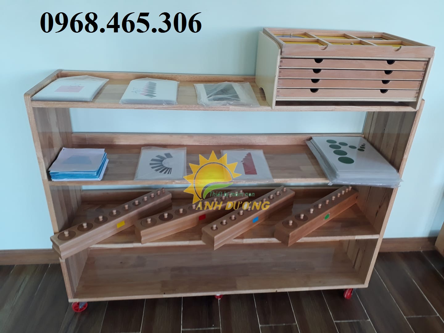Kệ mầm non, tủ gỗ mầm non đa dạng về mẫu mã, kích thước.
