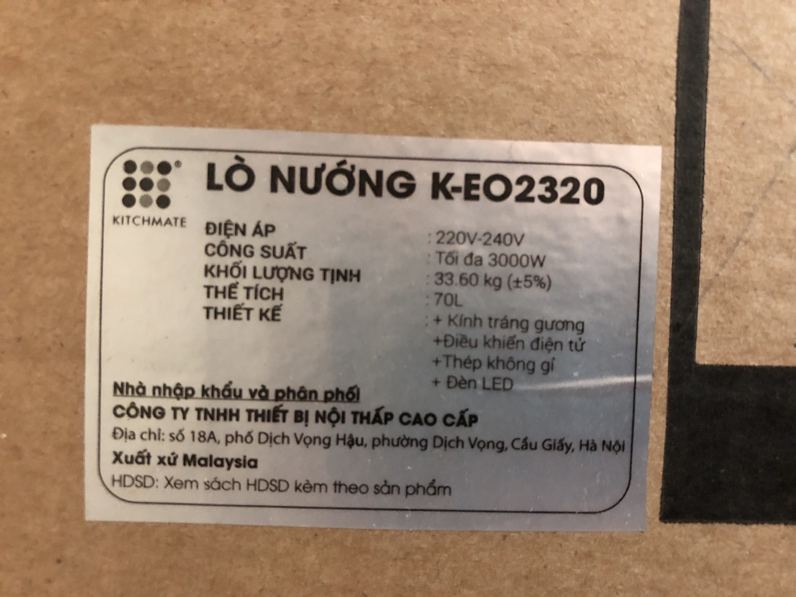 Kiểu dáng sang trọngLò nướng âm tủ Kitchmate K-EO2320 thiết kế đặt âm, cửa kính cách nhiệt, đảm bảo an toàn khi nấu nướng, ngăn cách nhiệt độ cao bên trong khoang lò. Khung ngoài bằng chất liệu thép không gỉ cao cấp, chịu được mức nhiệt độ cao, đem lại tuổi thọ bền đẹp lâu dài cho thiết bị. Vẻ ngoài sang trọng màu xám bạc và kính đen tạo nên sự sang trọng hiện đại cho không gian bếp.