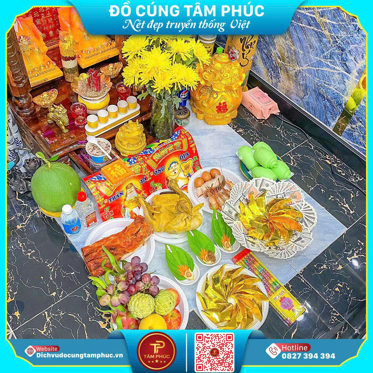 👉 Tâm Phúc sẵn sàng chuẩn bị mâm cúng Thần Tài chu đáo cho gia chủ.