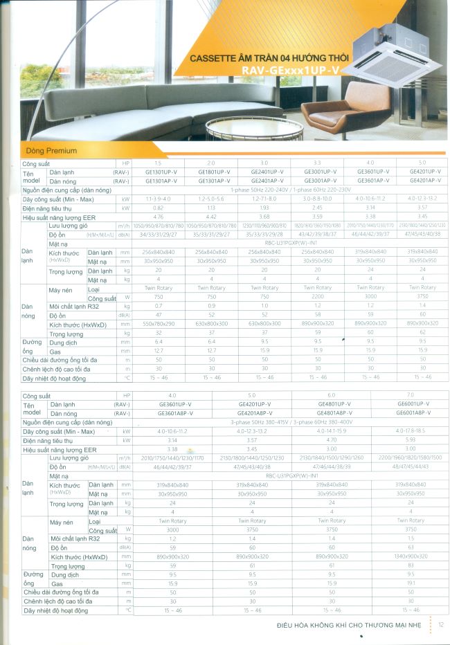 Máy lạnh âm trần Toshiba Inverter RAV-GE1301UP-V (mã RAV-GE1301AP-V/RAV-GE1301UP-V) có công suất 1.5HP, xuất xứ Thái Lan, bảo hành 2 năm. Đây là dòng máy lạnh âm trần Cassette SPI với thiết kế nhỏ gọn, dễ lắp đặt, phù hợp cho cửa hàng và doanh nghiệp nhỏ. Sản phẩm sử dụng gas R32 thân thiện môi trường và tích hợp công nghệ Inverter giúp tiết kiệm điện, đạt hệ số hiệu suất COP lên đến 4.76.