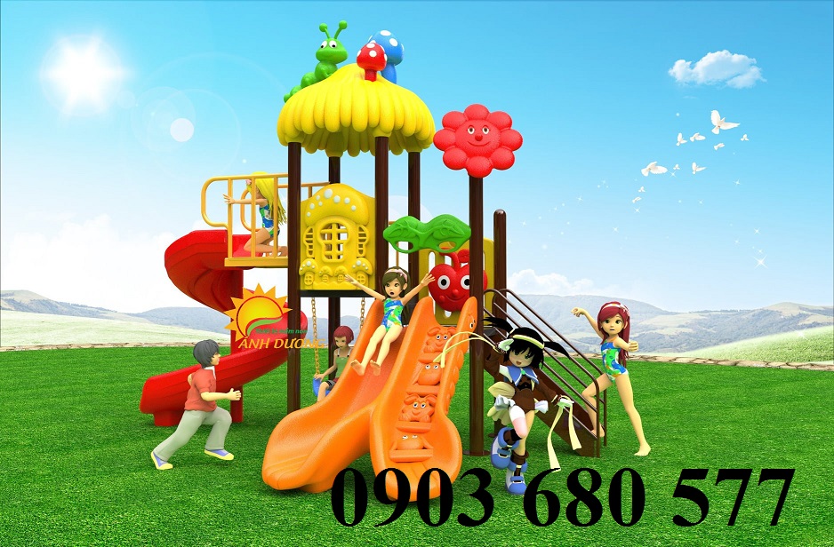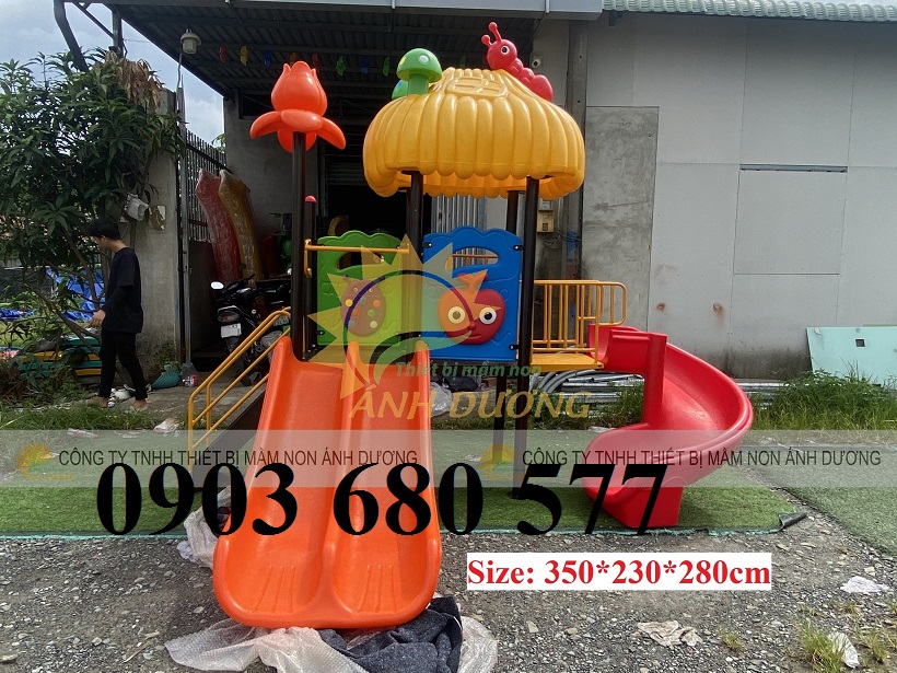- Cầu trượt gồm các chi tiết máng trượt, phù điêu, ghế xích đu được làm bằng nhựa PP nguyên sinh, chuyên sử dụng cho ngoài trời.
