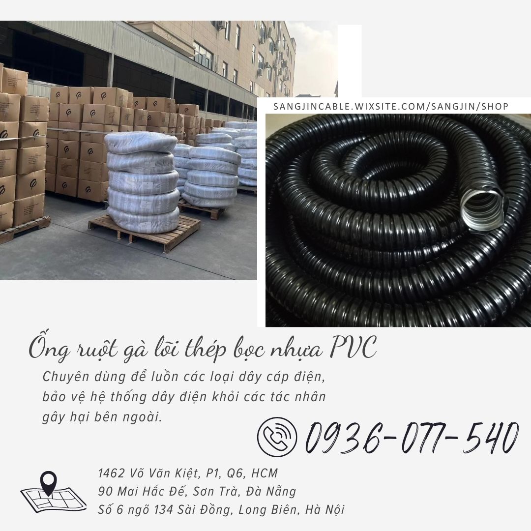 Công dụng: Ống ruột gà lõi thép bọc nhựa là ống chuyên dụng để luồn các loại dây cáp điện, bảo vệ hệ thống dây điện khỏi các tác nhân gây hại bên ngoài. Ống có thể sử dụng được cả trong nhà lẫn ngoài trời, ở những vị trí mà ống lõi thép cứng không uốn nắn được.