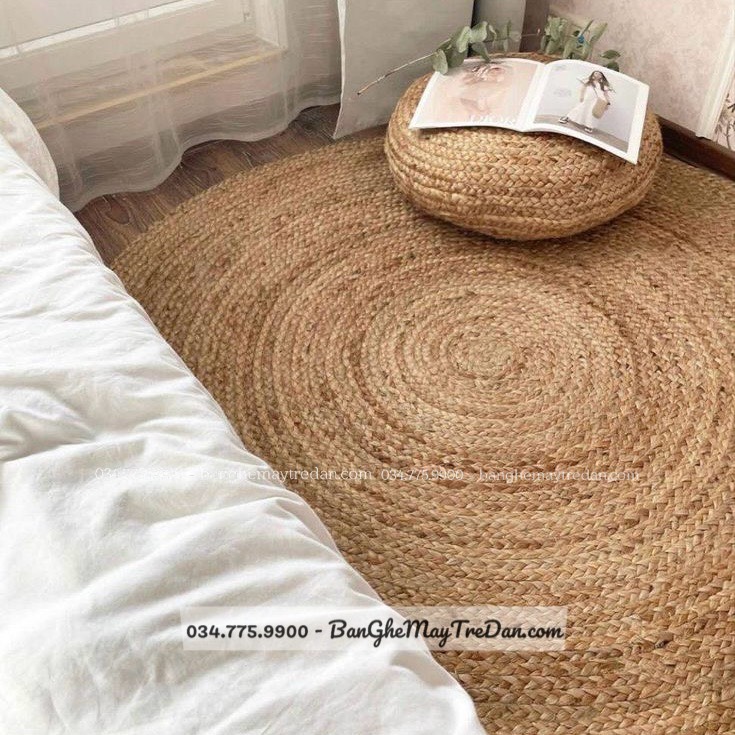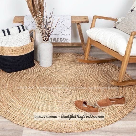 Trong phòng khách: Đặt thảm lục bình tròn dưới bàn trà hoặc bàn kính sẽ tạo điểm nhấn cho phòng khách. Nó cũng có thể đặt giữa sofa và TV, tạo ra một khu vực trung tâm
