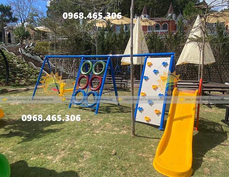 Gồm liên hoàn xích đu cầu trượt, 2 khối xích đu với dạng ghế ngồi khác nhau.