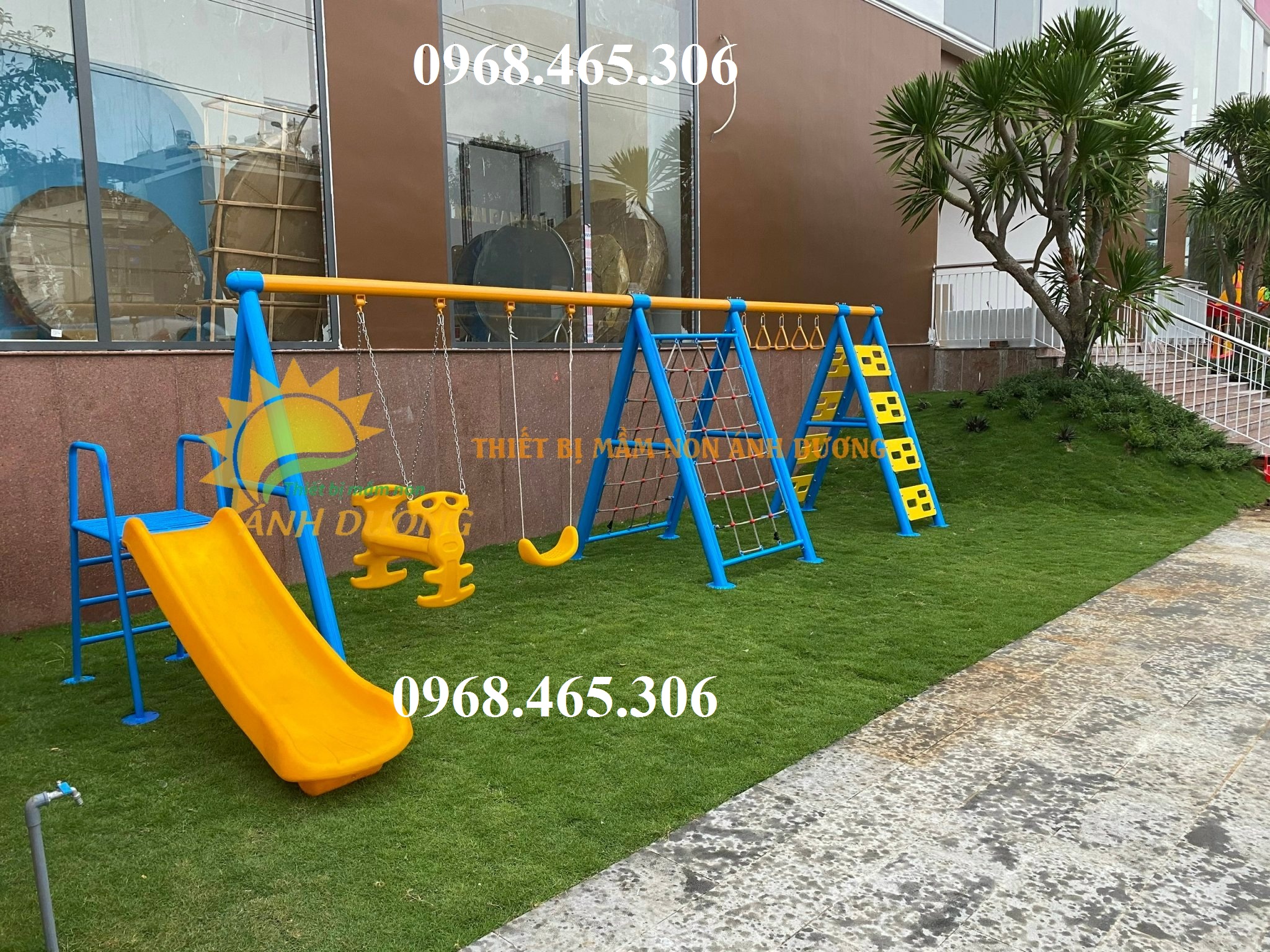 Gồm liên hoàn xích đu cầu trượt, 2 khối xích đu với dạng ghế ngồi khác nhau.