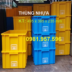 Thùng nhựa đặc kích thước 495 x 395 x 235 mm, khay nhựa, sóng nhựa bít