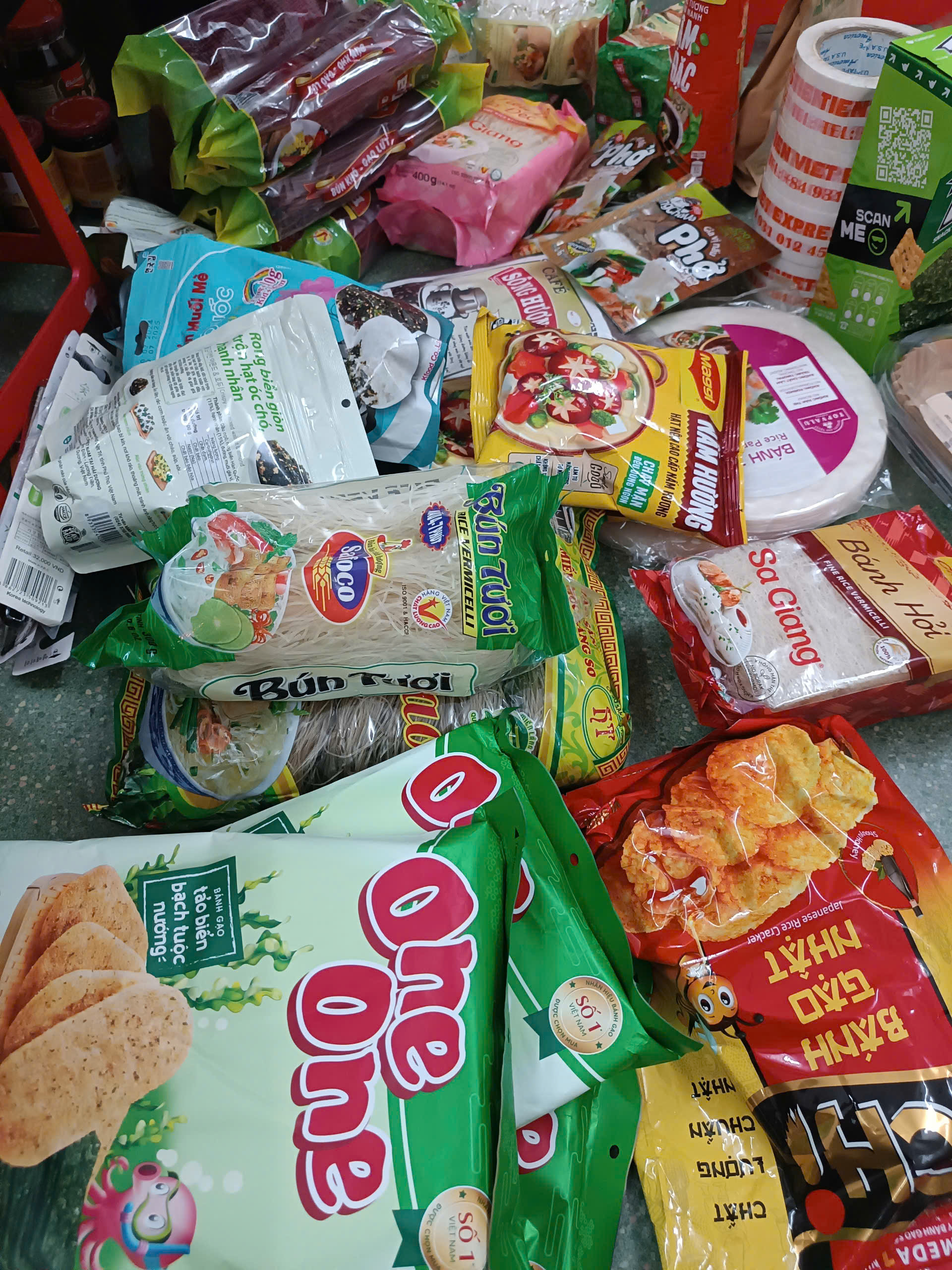 - Hàng thực phẩm, hạt điều, ngũ cốc, trái cây sấy khô, bánh kẹo, bánh tráng...