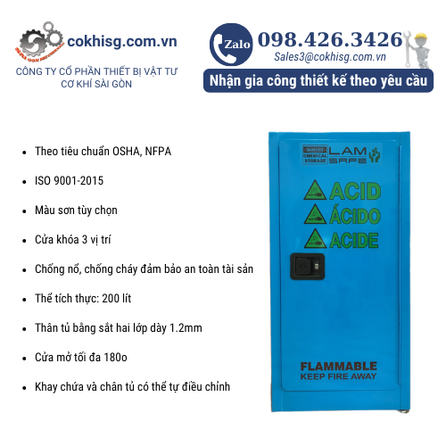 - Sản xuất dựa theo tiêu chuẩn OSHA, NFPA