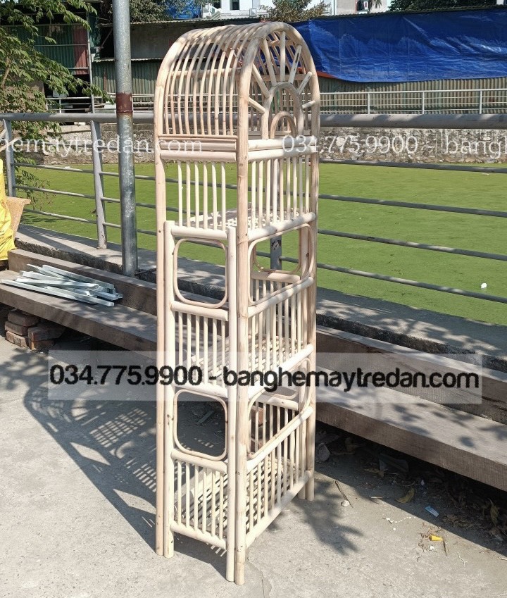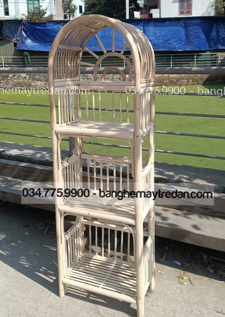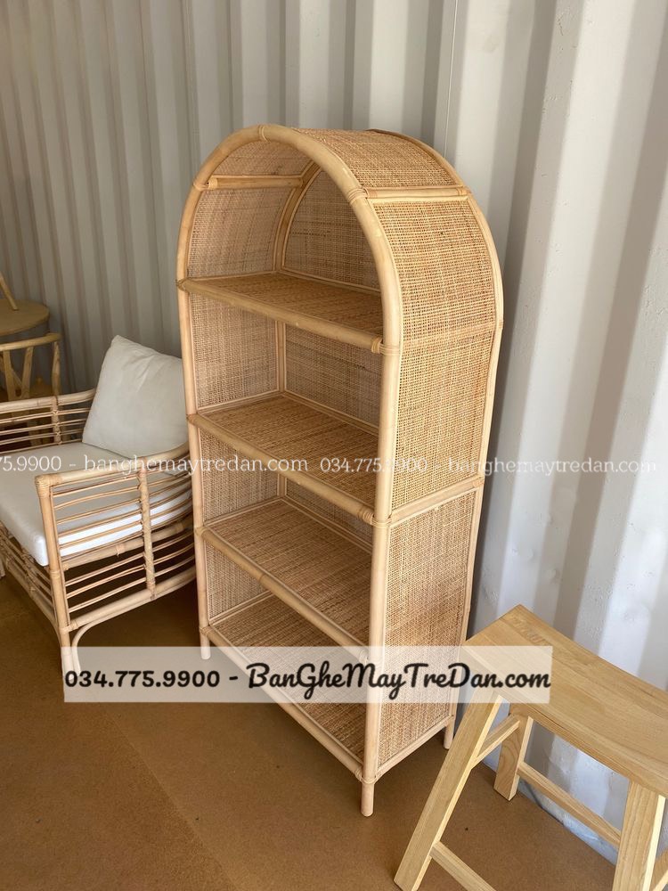 Thiết kế chủ đạo của tủ kệ bởi những cây mây song song với mái cong vòm đem lại cảm giác nhẹ nhàng và mềm mại. Không chỉ là một món đồ trang trí, tủ kệ còn cung cấp không gian lưu trữ tiện ích với ba tầng kệ rộng rãi. Bạn có thể trưng bày những vật phẩm yêu thích, sách, hoặc các món đồ trang trí trên các tầng kệ tinh tế.