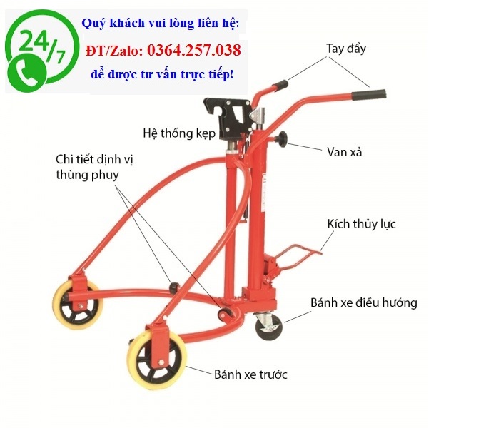 Thiết kế xe ôm gọn và vừa vặn với các phuy sắt, phuy nhựa.